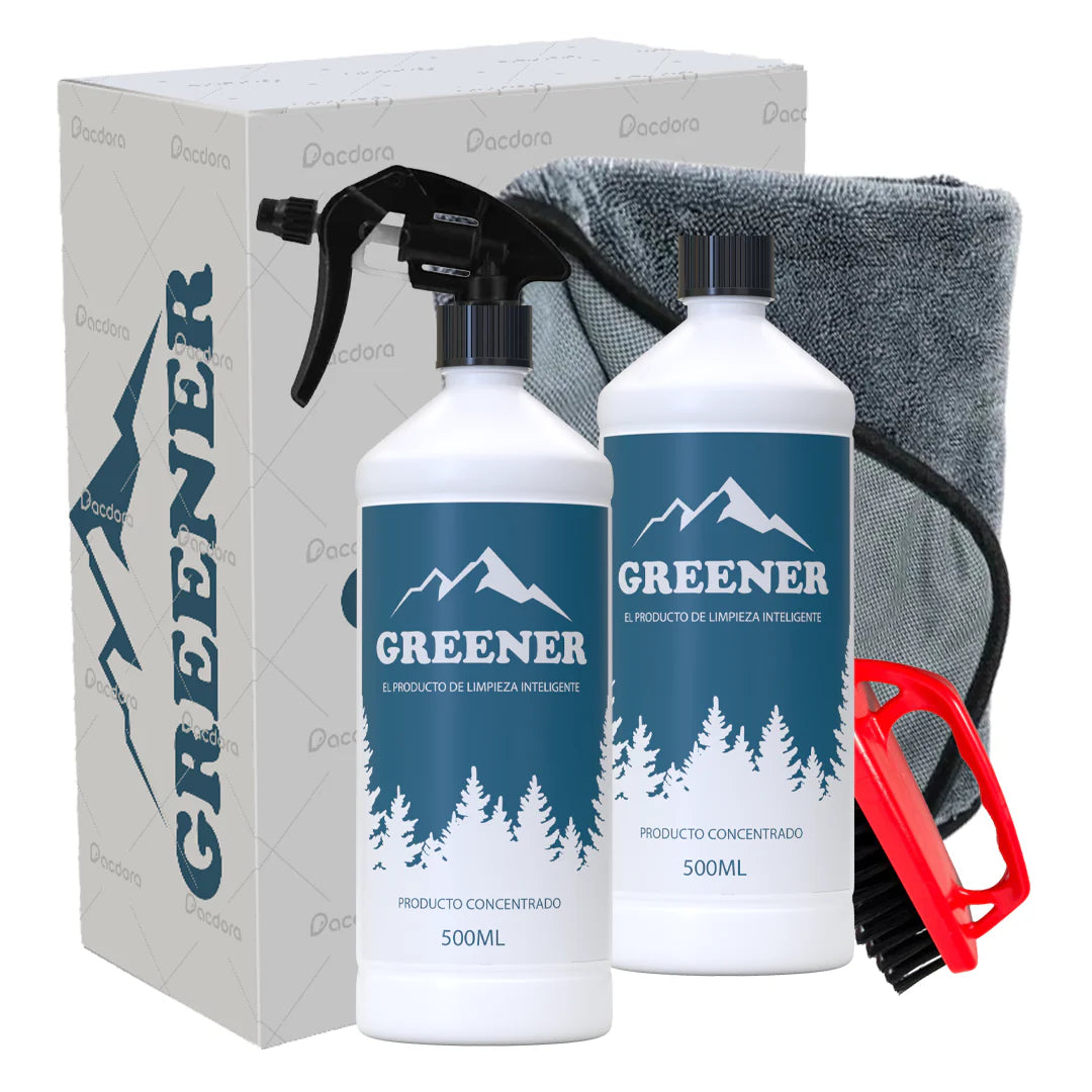 Ten presente que GREENER es un producto con pH ácido no siendo apto para aplicarlo en superficies porosas como mármoles y piedras naturales, así como en aluminio, plata, oro, superficies esmaltadas, pintadas o barnizadas, latón, superficies dañadas o calientes, aparatos eléctricos, ni vidrios mates o decorados a la arena. También es aconsejable consultarlo con el fabricante.